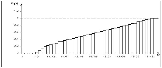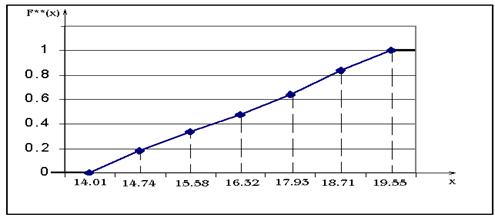 Пример графика статистической функции распределения представлен на рис.1, из которого видно, что F*(x) представляет собой ступенчатую функцию.