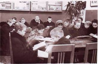 Читатели военной поры вспоминают, что в библиотеке было холодно, отопление было печное, но работал и абонемент и читальный зал. В помещении ребята не раздевались, нередко простужались и болели. Но юные читатели любили свою библиотеку и шли не только за книгой, но и за советом – как лучше написать сочинение, подготовить доклад, а педагоги – за консультацией, как интереснее проводить утренники в школе, как организовать работу с безнадзорными детьми и пр.[47]