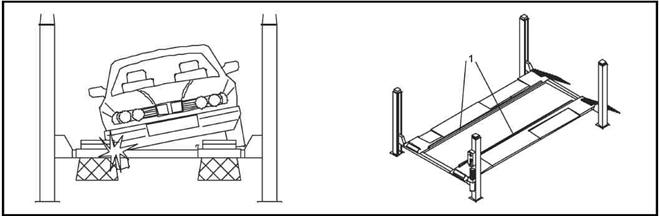 § В случае превышения габаритов или неправильной установки автомобиля на подъемнике существует опасность смещения автомобиля (бокового или продольного), что может причинить вред персоналу (рис. 29-30).