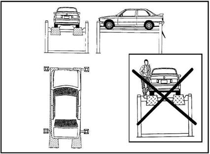 НЕСОБЛЮДЕНИЕ ЭТОГО ТРЕБОВАНИЯ МОЖЕТ СТАТЬ ПРИЧИНОЙ НАНЕСЕНИЯ СЕРЬЕЗНЫХ ТРАВМ ПЕРСОНАЛУ ИЛИ ПРИЧИНЕНИЯ НЕПОПРАВИМОГО УЩЕРБА ПОДЪЕМНИКУ И ПОДНИМАЕМОМУ АВТОМОБИЛЮ.
