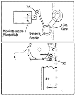 · При обрыве троса замок безопасности (3) останавливает подвижную часть подъемника в ближайшей прорези линейки безопасности (Рис. 23), а выключатель – датчик троса (4)прерывает подачу электропитания на насосную станцию (Рис. 24).