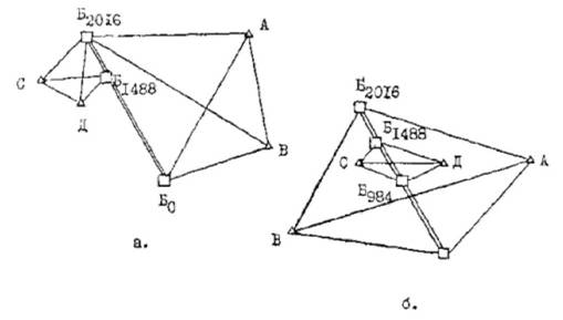 4.1.5 Конечные пункты базиса один или два раза из других основных пунктов должны входить в число пунктов сети микротриангуляции.