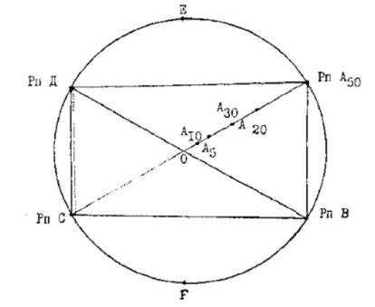 4.4.2.4 Все точки, расположенные на окружности, используются для исследования эксцентриситета горизонтального круга теодолитов с односторонним отсчетом.