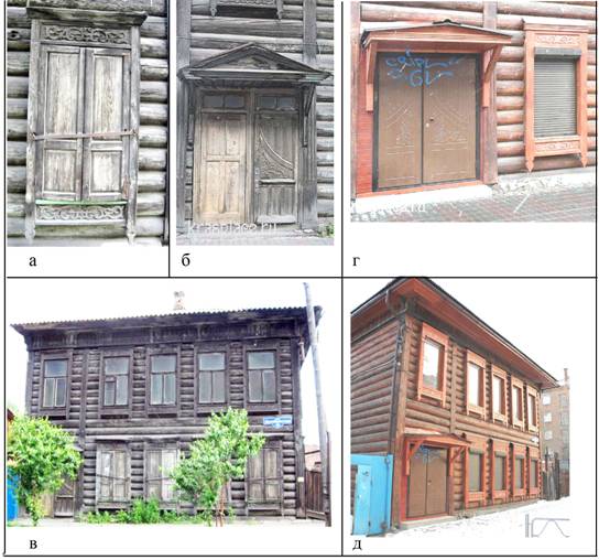 Деревянные двухэтажные дома, расположенные в квартале, являются ярким примером жилой застройки начала XX в. Почти все деревянные дома в квартале являются объектами культурного наследия регионального значения. но то, каким образом начались работы по ремонту и реставрации отдельных зданий, может привести к снижению ценности памятников архитектуры. Речь идет о ремонте дома по . О реставрационных мероприятиях в данном случае говорить не приходится. С памятника архитектуры были сняты оконные наличники. Их заменили новыми, в которых деревянная накладная резьба выполнена с отступлениями от оригинала. Вместо деревянных рам вставлены стеклопакеты, исчезли деревянные ставни на окнах первого этажа, бревенчатые стены «украсили» коробками кондиционеров; полностью утрачено дверное полотно с элементами накладной резьбы. Взамен деревянной двери установлена металлическая, на которую нанес линейный орнамент (рис. 3).