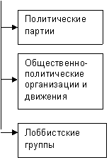 IV.2.3. Большинство институтов политической системы общества, не являющихся государственными организациями или политическими партиями, в западной политологии обычно именуются группами интересов или группами давления. Их главная особенность заключается в том, что они не претендуют на государственную власть, а лишь пытаются влиять на принимаемые государственными органами решения. При этом они не участвуют непосредственно в процессе принятия политических решений и не несут политической ответственности за их последствия. В зависимости от целей их деятельности выделяют группы, отстаивающие материальные потребности либо идеологические или моральные принципы; выступающие за интересы отдельных социальных общностей либо общечеловеческие; ставящие долгосрочные цели либо выступающие «за» или «против» конкретных политических деятелей, правительственных решений и т. п. По методам деятельности они могут быть легальными, теневыми (различные лобби, оказывающие давление на законодателей и чиновников) и преступными (мафия, террористические организации). По организационному критерию они делятся на общественные организации и массовые движения.