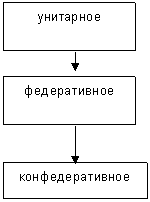3) Конфедерация (временный союз государств, образуемый для достижения политических, военных, экономических и прочих целей). Конфедерация не обладает суверенитетом, ибо отсутствуют общий для объединившихся субъектов центральный государственный аппарат и единая система законодательств. В рамках конфедерации могут создаваться союзные органы, но лишь по тем проблемам, ради решения которых они объединились, и лишь координирующего свойства. Конфедерация представляет собой непрочные государственные образования и существует сравнительно недолго: они либо распадаются (как это произошло с Сенегамбией – объединением Сенегала и Гамбии в 1982 – 1989гг.), либо преобразуются в федеративные государства (как это было, например, со Швейцарией, которая из конфедерации Швейцарский союз ()трансформировалась в федерацию. Появилась новая форма ассоциированного объединения, названная содружеством государств. Примером является СНГ (Содружество Независимых Государств). Эта форма еще более аморфная и неопределенная, чем конфедерация.