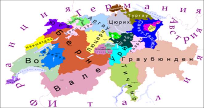 Швейцария — федеративная республика, включающая 26 кантонов (20 кантонов и 6 полукантонов). На территории Швейцарии находятся 2 анклава: Бюзинген принадлежит Германии и Кампионе — Италии.