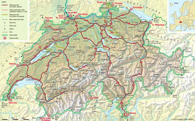 Карта платных дорог Швейцарии