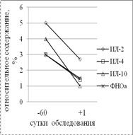 Цитокиновый профиль у испытателей-добровольцев в условиях 7-суточной «сухой» иммерсии.
