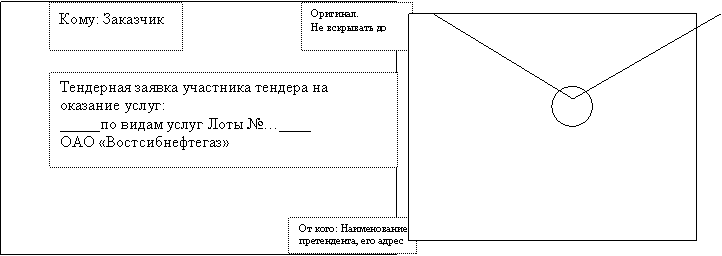 9.2 Оригинал и копии участник тендера запечатывает в единый внешний конверт, который опечатывается в местах, исключающих вскрытие конверта без его повреждения. Образец оформления внешнего конверта прилагается.