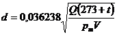 Q, d, v | - | обозначения те же, что и в формуле (1). |