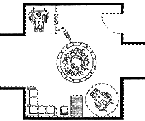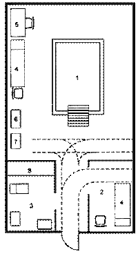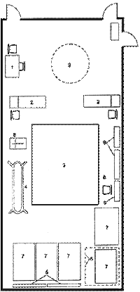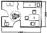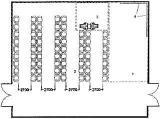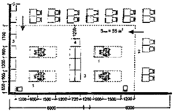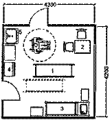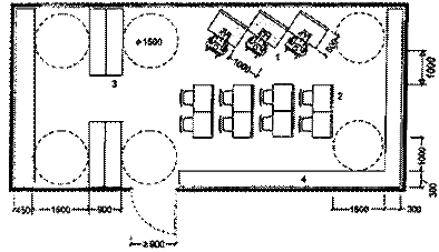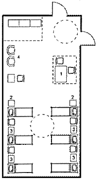 | 1 - место для инвалидов; 2 - обычный стол читателя; 3 - стеллажи; 4 - каталоги | |||