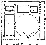 СХЕМА ОБОРУДОВАНИЯ НОМЕРОВ ДЛЯ ИНВАЛИДОВ В ГОСТИНИЦЕ ПРИ ВОКЗАЛЕ | |||