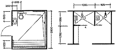 1 - поручень; 2 - душевая сетка; 3 - откидное или стационарное сидение; 4 - занавес или раздвижная дверь | ||