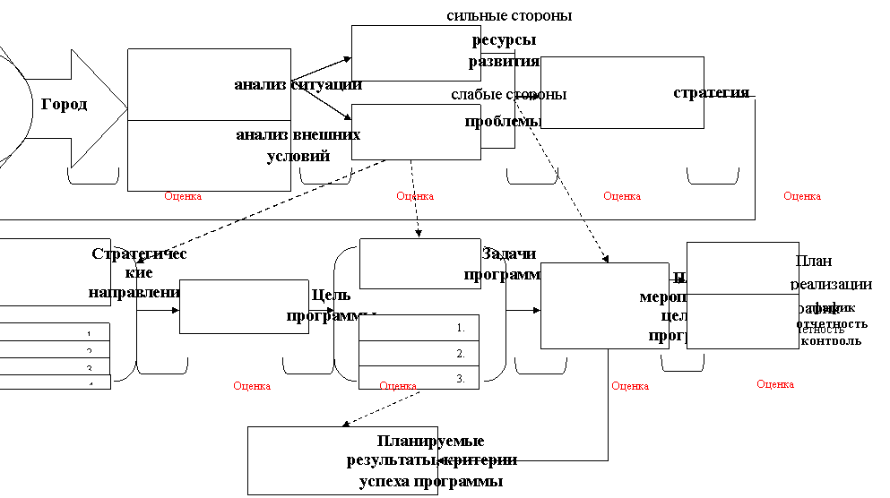 Начиная с середины 1990-х гг., российские города выбирали самые различные формы планирования экономического развития - традиционные «Основные направления социально-экономического развития», программы, планы и т. п. Выбор того или иного варианта определялся текущей ситуацией в городах, существующим уровнем городского управления, системой предпочтений городских руководителей. В большинстве случаев эти документы имели краткосрочный характер, а сложная экономическая ситуация, в которой находились города, нередко определяла их «антикризисный» статус. Программы и планы чаще всего нацеливались на «латание дыр» - решение оперативных задач, ликвидацию кризисных ситуаций в отдельных отраслях городской экономики и социальной сферы.