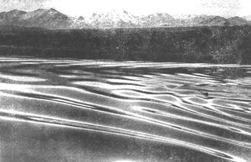 На третий день — прекрасная ясная погода. Наконец-то открылся во всю ширь знаменитый Иссык-Куль, изумительная голубизна которого все время дразнила и манила нас к себе в те короткие промежутки времени, когда погода была ясной. Удивительное создание природы — Иссык-Куль, одно из глубочайших озер в мире. Опережая события, скажу, что в этом году нам не удалось самим ощутить прелести озера и только в следующем, 1966 году, во время экспедиции в Каракольское ущелье, мы по-настоящему познакомились с озером, проведя несколько дней на его песчаных пляжах. Однако вернемся на гребень Чоктала.