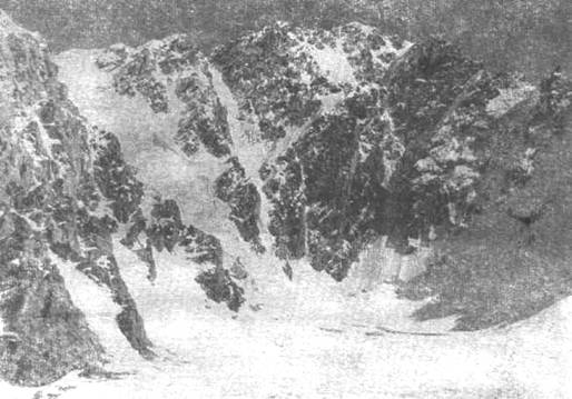 Главные наши задачи — первовосхождение по северной стене на первую восточную (главную) вершину Мешковым, В. Клименко, Ю. Козляевым, В. Меньшиковым и траверс массива с востока на запад А. Серьезновым, И. Добкиным, Н. Ивановой, Ю. Коноваловым, В. Мартыновым, В. Терлецким — были успешно выполнены. Дальнейший рассказ об этих восхождениях поведут участники.