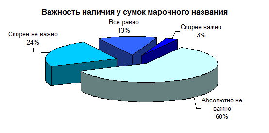 При ответе на вопрос о значимости марочного названия при выборе сумки мнения потребителей распределились следующим образом: