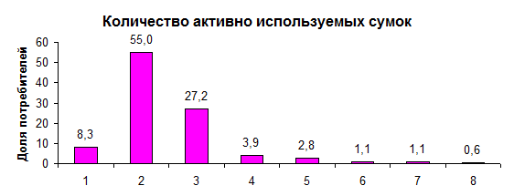 Около 70% женщин, покупающих сумки на рынках активно пользуются одной-двумя сумками.
