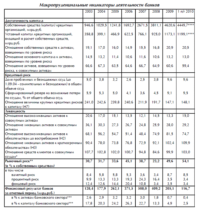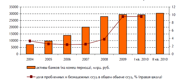В результате действия совокупности факторов, показатель достаточности капитала (Н1), после заметного роста в 2009 году (с 16,8% до 20,9%), снизился до 18,9%. На 1 июня 2010 года, по даны Банка России, более 86% действующих банков имеют показатель достаточности капитала выше 14%. У 44 кредитных организаций этот показатель находится в диапазоне 10-12%, что потенциально относит эти банки в «группу риска»[3]. Ситуация для последних осложняется тем, что с 1 июля текущего года был восстановлен прежний порядок резервирования по ссудной и приравненной к ней задолженности (для новых, просроченных и реструктурированных после этой даты ссуд), а следовательно существует вероятность нарушения требований по капиталу, так как уровень доходности не всегда позволяет покрывать рост отчислений в резервы. Еще одной важной характеристикой текущей ситуации в банковской системе является то, что вопреки прогнозам не произошло ощутимого роста сделок слияний и поглощений, которые не только усиливают концентрацию капитала, но и стимулируют его приток в систему финансового посредничества. Только на первом этапе финансового кризиса благодаря мерам прямой и косвенной государственной поддержки было зафиксировано несколько десятков такого рода сделок. Однако в дальнейшем эта тенденция не получила развития, что объясняется грузом нерешенных проблем в сфере банковской деятельности.