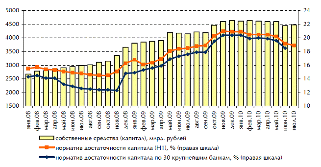 С 2010 года собственный капитал любого банка должен быть не менее 90 млн. руб., а с 2012 года – 180 млн. руб. Весьма вероятно дальнейшее ужесточение этого требования. Ожидается, что из-за несоответствия требованиям к размеру капитала десятки банков могут лишиться лицензий.