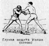 В бою нередко бывают такие положения, когда активная защита становится невозможной: действие сильного удара, усталость и другие причины часто приводят боксёра к растерянности. Одним из проверенных средств, выводящих боксёра из затруднительного положения, является глухая защита. Она не раз спасала боксёров от поражения. Фредди Уэлш в бою с Пэкчн Мак-Фарландом сохранил своё звание лишь благодаря глухой защите, когда, сильно повредив себе правую руку, во второй половине боя, он переменил наступательную тактику на оборонительную и. действуя в глухой позиции левой рукой, дотянул бой до конца. Это сохранило ему преимущество в набранных ранее очках.