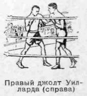Среди силовых ударов Джесса Уилларда особого интереса заслуживает его правый джолт. Это короткий прямой удар, наносившийся им с близкого расстояния в туловище согнутой в локте рукой.
