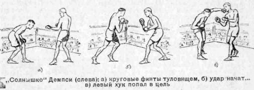 «Солнышко» получило свое название от вращательных круговых движений туловищем, которые Демпси применял перед атакой как финты. Тактическая цель этих финтов заключалась в том, чтобы войти в ближний бой, избегая встречных ударов и подготавливая в то же время раскрытие защиты противника. Наклонившись вперёд и вправо, Демпси начинал делать медленные движения по кругу влево, вверх и вправо. При этом его руки, согнутые в локтях, ритмично двигались внутрь и наружу. Воздействия финтов на противника Демпси усиливал небольшими шагами в стороны. Подвижность Демпси затрудняла нанесение встречных ударов со стороны противника, за защитой которого зорко следил Демпси.