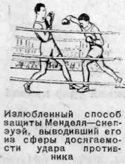 Особенным совершенством в этой защите владел Сэм Мендель. Применяя ее, он выводил противников из равновесия, когда те пытались довести свой удар до цели. Промахнувшийся противник обычно раскрывал свою защиту. Сэм Мендель использовал момент замешательства противника для перехода в контратаку.