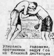 Каждый осмотрительный и осторожный боксёр обычно начинает бой и каждый раунд сдержанной схваткой, в которой он при помощи финтов старается обнаружить излюбленные действия и манеру боя противника. Такое начало боя стало установившимся правилом для многих боксёров.