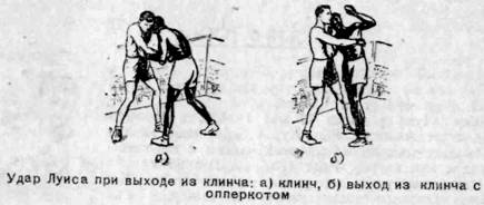При выходе из клинча следует немедленно встать в боевую стойку, держа левую руку в готовности остановить джебами противника при его попытках преследовать.