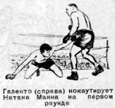 Его бои, привлекающие колоссальные аудитории, как нельзя лучше соответствуют вкусу американского зрителя. Они остры положениями, драматичны и зрелищны. Галенто никогда не избегает в них острых положений, наоборот, он стремится к ним, считая такую тактику наиболее выгодной для себя. Его боевой список пестрит нокаутами, сделанными им в первых раундах.