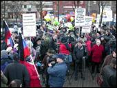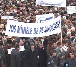 Надпись на транспаранте: «Руки прочь от профсоюзов!» |