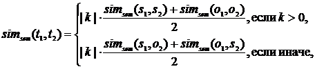 1) Если sim(p1, p2) < 0 (путь между предикатами в онтологии содержит нечетное количество отношений invertOf), то s1 сравнивается с o2, а o1 сравнивается с s2 (перекрестное сравнение),