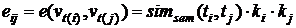 E – множество ребер с весовыми коэффициентами, которые равны значениям близости между триплетами.