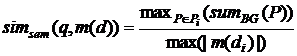 На основе графа BG близость между метаописаниями q и m(d) вычисляется по следующей формуле: