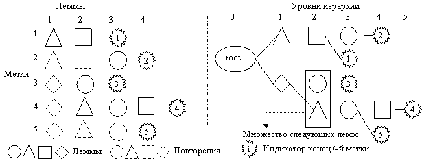 Для оптимизации выполнения функции search(Д, i) при проверке принадлежности метки набору меток предполагается сохранить наборы текстовых меток с использованием структуры данных, представленной на рис. 5.