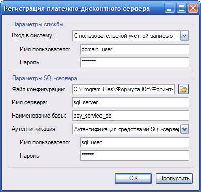 Диалог предназначен для ввода основных параметров платежно-дисконтного сервера: