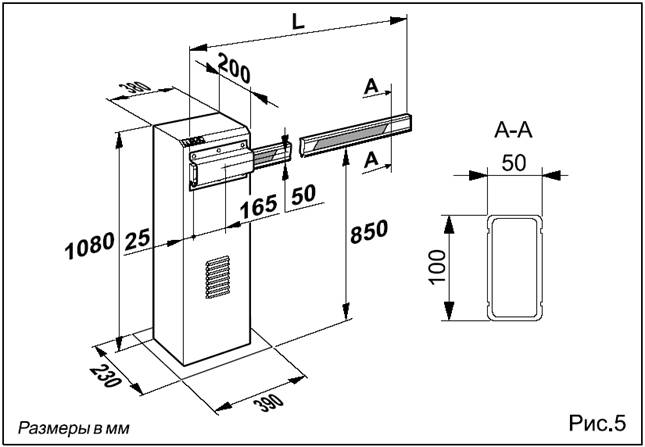 Работа шлагбаума контролируется блоком управления в отдельном, с достаточной степенью защиты от атмосферных воздействий, корпусе, и который можно поместить внутри стойки шлагбаума.