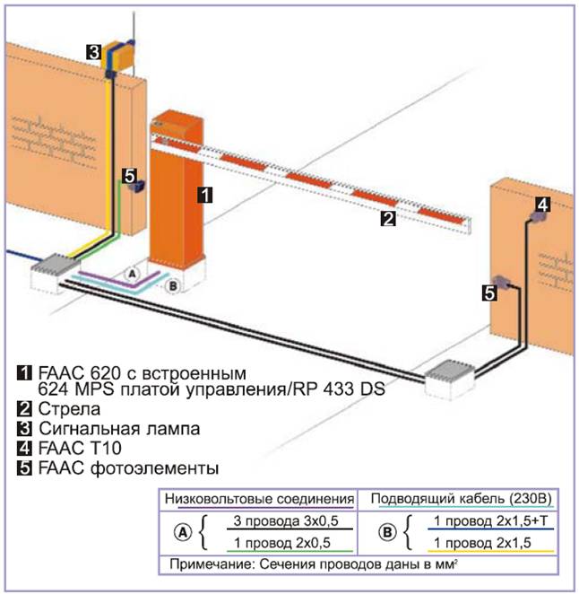 Автоматическая система включает устройства безопасности (фотодатчики), которые предотвращают закрытие стрелы когда есть какое то препятствие в зоне проезда.