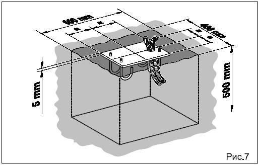 • Подготовьте фундамент, как показано на рис.7 (для мягкой почвы)