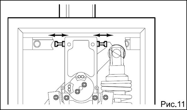 • Настройте механические упоры для открытого и закрытого положения, как показано на рис.11. Проверьте балансировку стрелы, как описано в нижеприведенном параграфе.