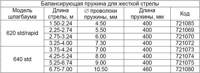 Внимание!: Шлагбаум поставляется с уже сбалансированной пружиной для указанной в заказе длины стрелы (см. Спецификацию заказа шлагбаума, в прайс-листе и таб.2-3). Закончите, при необходимости, настройку балансировки стрелы, следуя следующим указаниям: