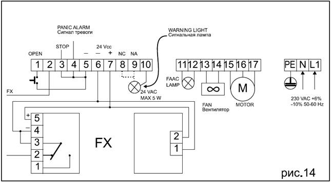 Данная клемма предназначена для подключения устройства безопасности с нормально замкнутыми контактами, которое используется в аварийной ситуации, при включении открывает стрелу
