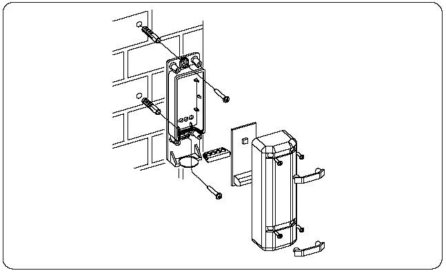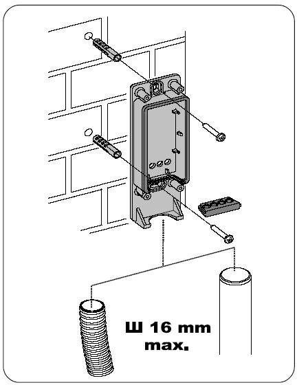 Закрепите корпус SafeBeam, используя поставляемые шурупы и дюбели.