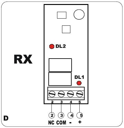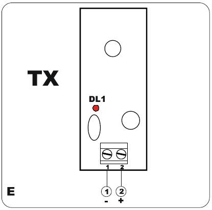 Подключите питание фотодатчиков и проверьте, чтобы индикатор DL1 на приемнике (рис. D) и Передатчике (рис. E) горел постоянно.