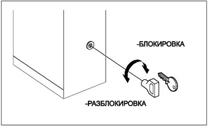 • Вставьте стандартный трехгранный или индивидуальный ключ в блокирующее гнездо и поверните против часовой стрелки на один оборот.