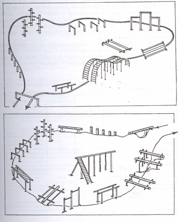 Тропы здоровья сооружаются на ровном естественном рельефе, на естественных тропах и лесных дорожках с искусственными и природными препятствиями (канавами, холмами), в также в городских парках и лесопарках, на спортивных комплексах и в микрорайонах. Протяженность тропы, как правило, 1- 3 км, ширина не менее 1,5 м. Искусственные (в виде снарядов) или естественные (природные) препятствия размещаются по всей тропе на расстоянии 200-300 м одного от другого. В начале трассы устанавливается щит со схемой тропы, а около каждого препятствия схема упражнений на нем.