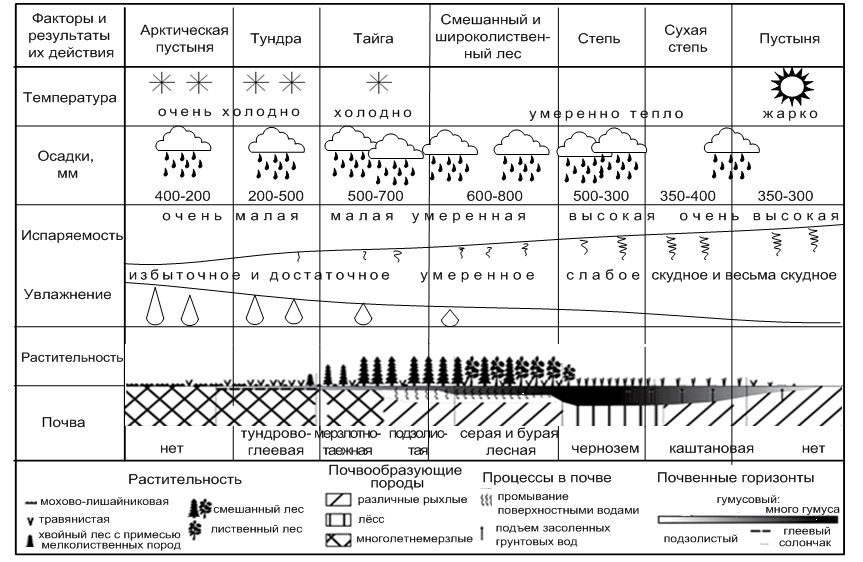 Рисунок 1 – Схема сменяемости основных факторов почвообразования природно-хозяйственных зон России