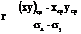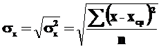 где σх и σу – среднеквадратические отклонения выборочных значений показателей х и у, для которых рассчитывается коэффициент корреляции, от выборочной средней. Величина среднеквадратического отклонения выборочного значения какого-либо показателя (например, х), как вы помните из курса статистики, равна квадратному корню из его дисперсии: